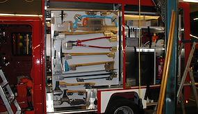 Unser Fahrzeug steht kurz vor der Fertigstellung. Die Geräteeinbauten sind beendet, die Ladebordwand und die Anhängekupplung sind fertig montiert. Am Montag erfolgen: Fertigstellungsarbeiten am gesamten Fahrzeug die Außenbeschriftung und die Anbringung der Reflexstreifen die Abnahme der Ladebordwand durch einen Ziviltechniker die Abnahme des Fahrzeuges durch den Landesfeuerwehrverband die Abnahme durch die Feuerwehr Am Dienstag sind die Zulassung des Fahrzeuges, die Endreinigung der Innenräume und die Vorbereitung des Fahrzeuges zur Übergabe vorgesehen.