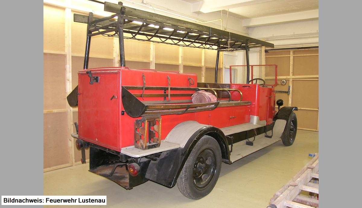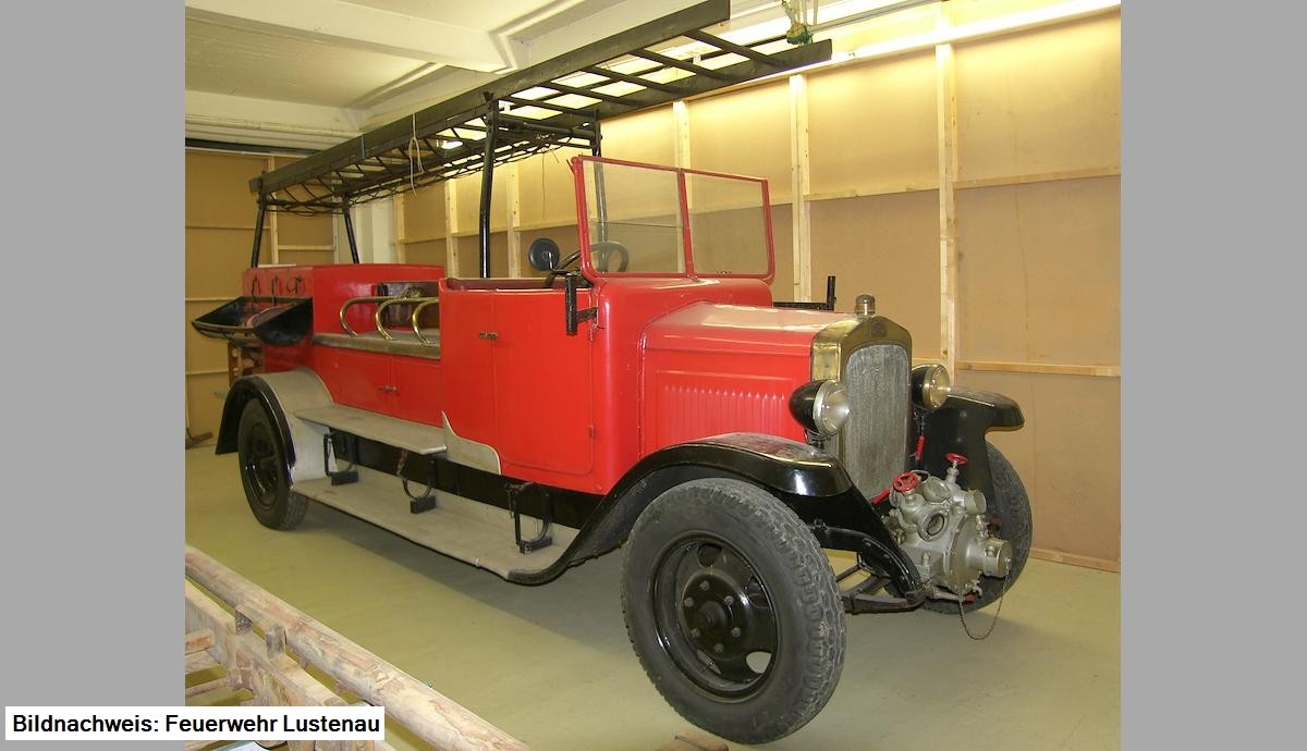 Es ist uns gelungen das erste Feuerwehrauto der Lustenauer Wehr - das erste im Land Vorarlberg - wieder nach Lustenau zurückzuholen.Im Rahmen des 2. Oldtimertreffens am Kirchplatz, am 27. Juni 2010, in der Zeit von 10.00 Uhr bis 17.00 Uhr, wird ihnen d´"Figo" wie sie im Volksmund genannt wurde, vorgestellt.Sie ist ein baugleiches Fahrzeug wie unser nach 1965 verlorengegangenes und wurde am 29.06.1926 von der Firma Rosenbauer an die Feuerwehr Radkersburg ausgeliefert.Nach fast einjähriger Verhandlung mit dem "Verein zur Förderung der Historischen Fahrzeuge der österreichischen Automobilfabriken" und der MAN Nutzfahrzeuge Österreich AG konnte das Fahrzeug im Jänner 2010 erworben und nach Lustenau gebracht werden. Im ehemaligen Möbelhaus Blatter wurde von unseren Feuerwehrmitgliedern eine Unterbringungsmöglichkeit geschaffen.Unser Ziel ist das Fahrzeug detailgetreu herzurichten, mit Original Zubehör wie Schiebeleiter, Saugschläuche, Schläuchen und Strahlrohren zu versehen und in einigen Jahren im alten Glanz erstrahlen zu lassen.