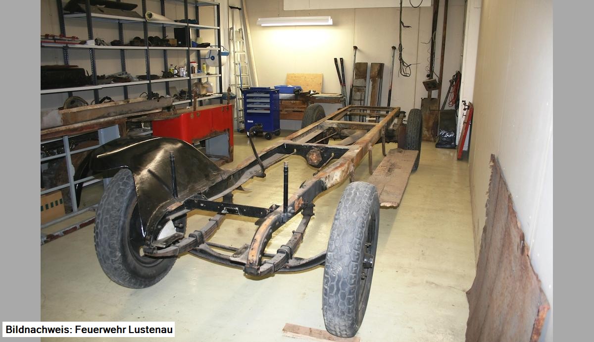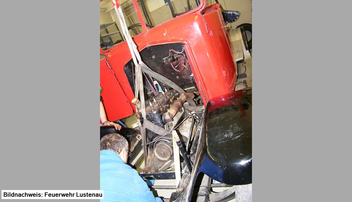 Seit einigen Wochen treffen wir uns jeden Montag bis spät in die Nacht und sind mit dem Abbau des Fahrzeuges beschäftigt. Eine Gruppe von jungen und alten "Feuerwehrlern" trifft sich jeweils um 19.30 Uhr und schließt den Abend meist gegen 23.00 Uhr mit einem kleinen Bier.
