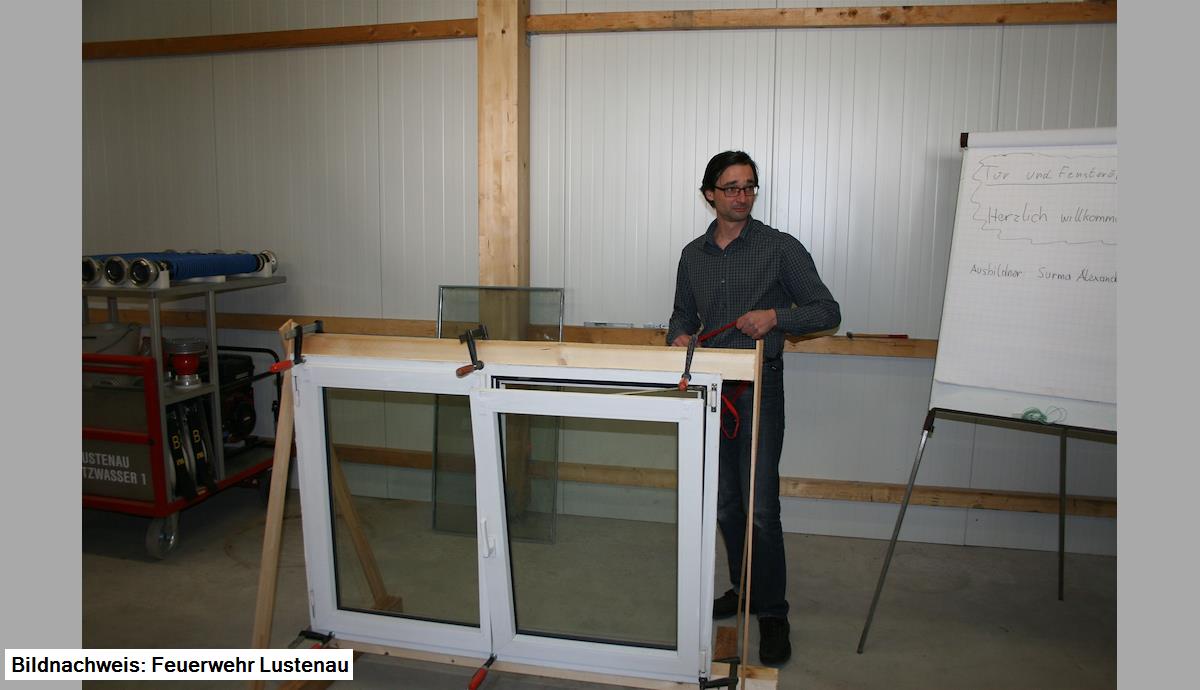Der letzte Punkt am Vormittag war das Kennenlernen unseres Sperrwerkzeugkoffers. Ein Mitarbeiter der Firma Siko – Sicherheits- und Kontrollsysteme GmbH zeigte uns die Möglichkeiten einer Türöffnung in der Praxis. Unser „Fensterspezialist“ Alexander Surma veranschaulichte ebenfalls bei praktischen Übungen wie ein Fenster auch von außen geöffnet werden kann (ohne dass wir gleich die Scheibe zertrümmern).