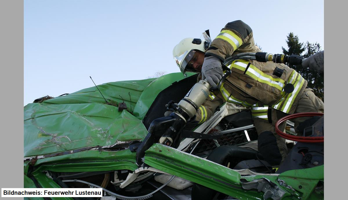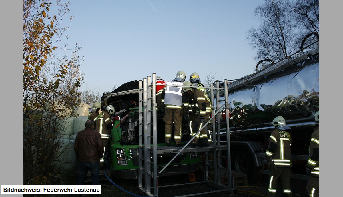 Den Abschluss unseres Nachmittagsprogramms bildete eine zwei Stunden dauernde praktische Übung an einer schwer verunfallten Sattelzugmaschine, welche uns freundlicherweise zum Üben zur Verfügung gestellt wurde. So konnten wir auch in der Praxis bei einem realistischen Übungsobjekt (moderne Sattelzugmaschine) den richtigen Einsatz aller uns zur Verfügung stehenden Gerätschaften beüben.