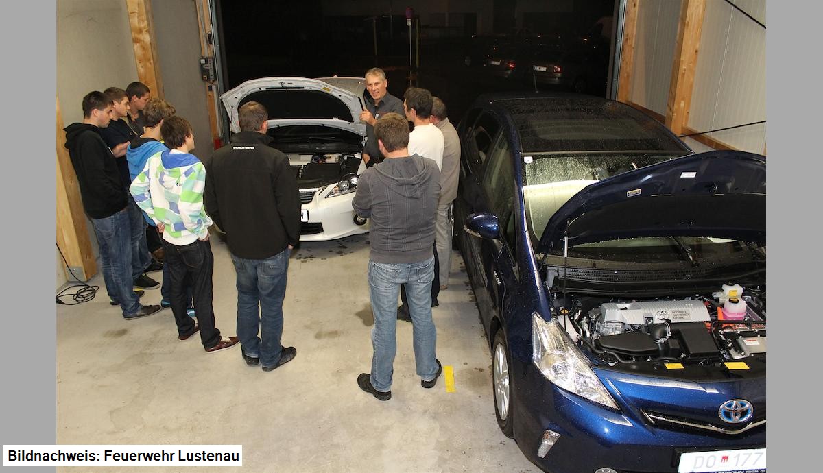 Die Gruppe "Hydraulische Rettung" hat am Dienstag, den 09.10.2012 dieses Thema vertieft in Zusammenarbeit mit Toyota Ellensohn bearbeitet. Nach einer theoretischen Schulung durch Jürgen Hämmerle, bei welcher auf die Gefahren und mögliche Sicherheitsmaßnahmen bei Fahrzeugen mit alternativen Antrieben eingegangen wurde, erfolgte der Praxisteil an zwei unterschiedlichen Hybridfahrzeugen.