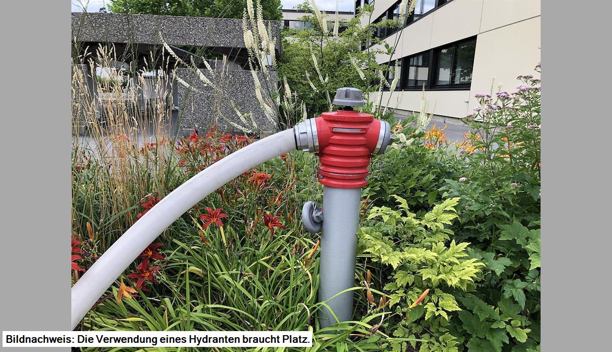 Eine besondere Herausforderung ist auch eine Bepflanzung in unmittelbarer Nähe zu einem Hydranten. Hier gilt die Regel, dass im Umkreis von einem Meter jede Bepflanzung die Verwendung des Hydranten stark einschränkt. Bepflanzungen sind daher fortwährend zu pflegen, damit die Verfügbarkeit des Hydranten dauerhaft gewährleistet ist.