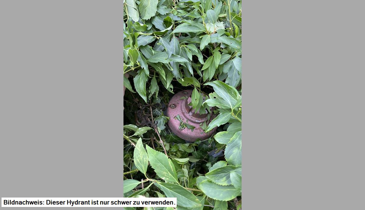 Damit im Ernstfall die Löschwasserversorgung rasch hergestellt werden kann, ist ein freier Zugang zu den Hydranten unbedingt erforderlich. „Wir stellen leider immer wieder fest, dass der freie Zugang zu den Hydranten durch Bewuchs oder Bauten stark eingeschränkt ist“, berichtet Kommandant Jürgen Hämmerle. Solche Hindernisse können die Verwendung des Hydranten stark beeinträchtigen und im schlimmsten Fall sogar verunmöglichen.