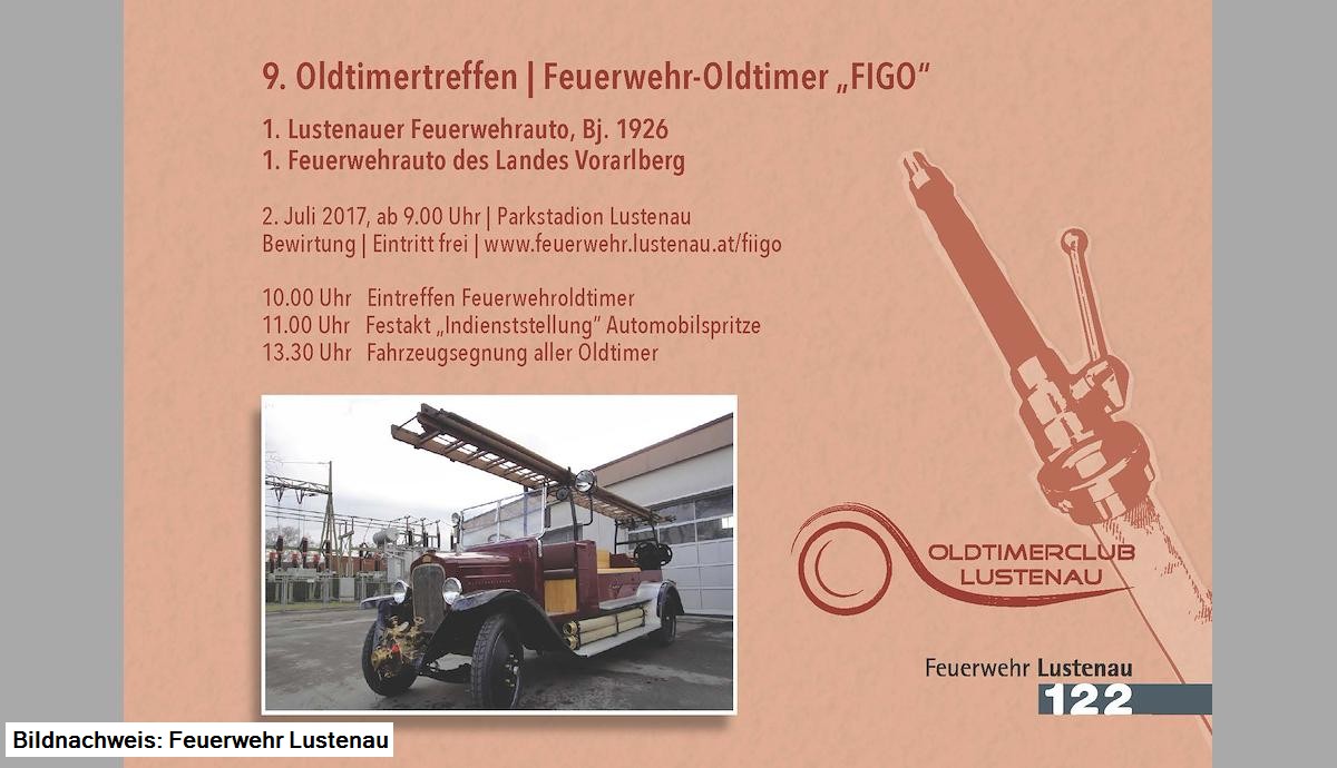Der Oldtimerclub Lustenau und die Feuerwehr Lustenau veranstalten dieses Jahr gemeinsam das 9. Oldtimertreffen mit Sonderteil Feuerwehroldtimer.