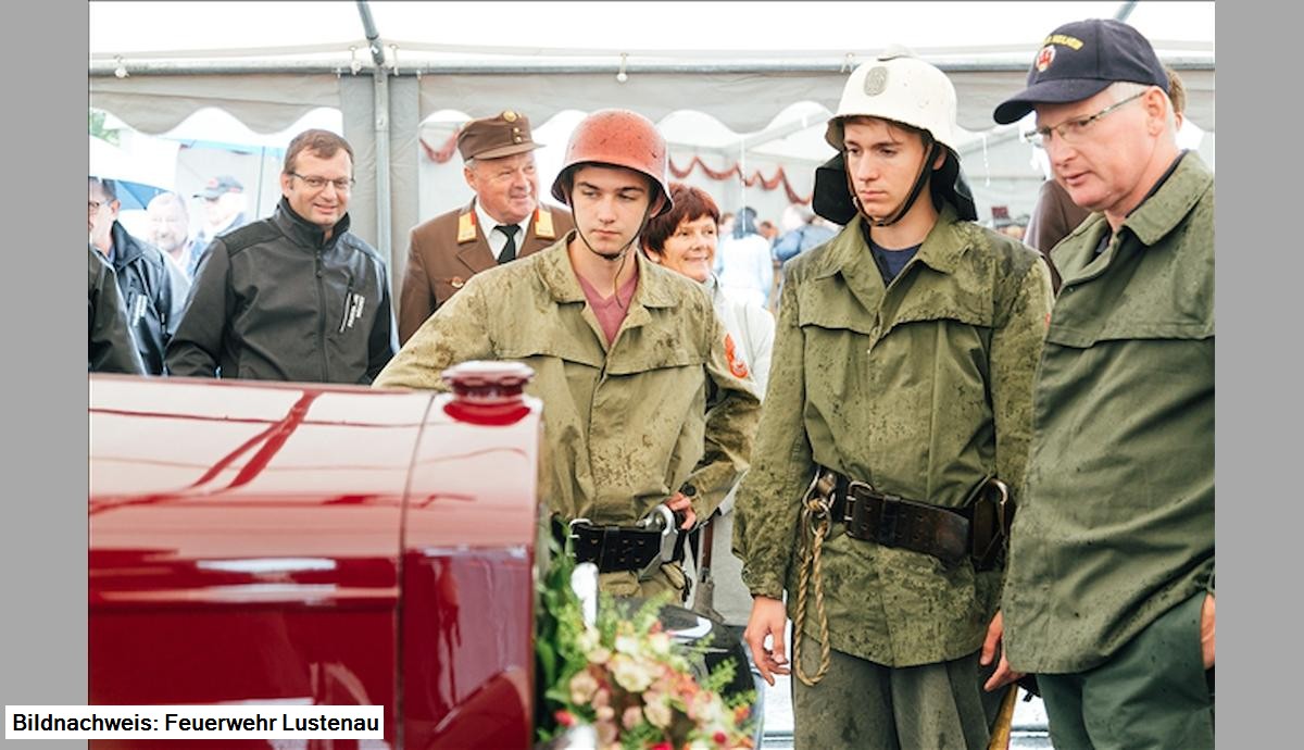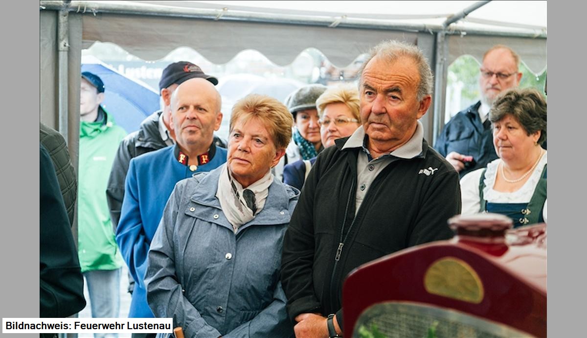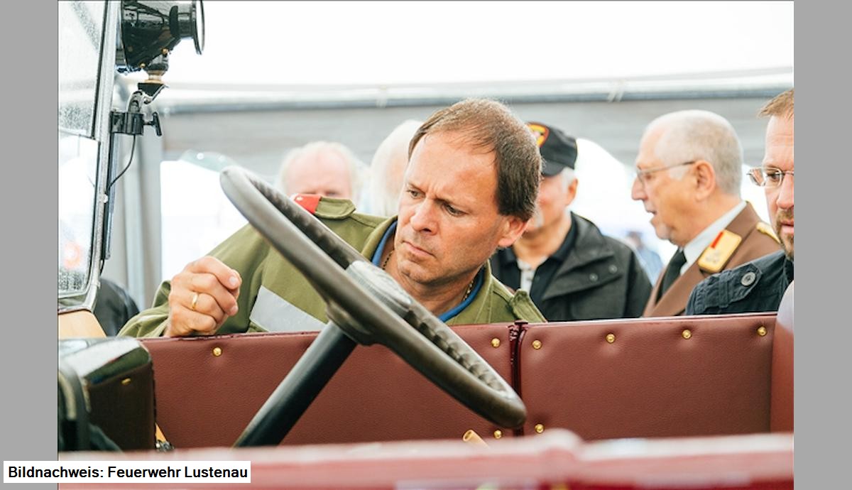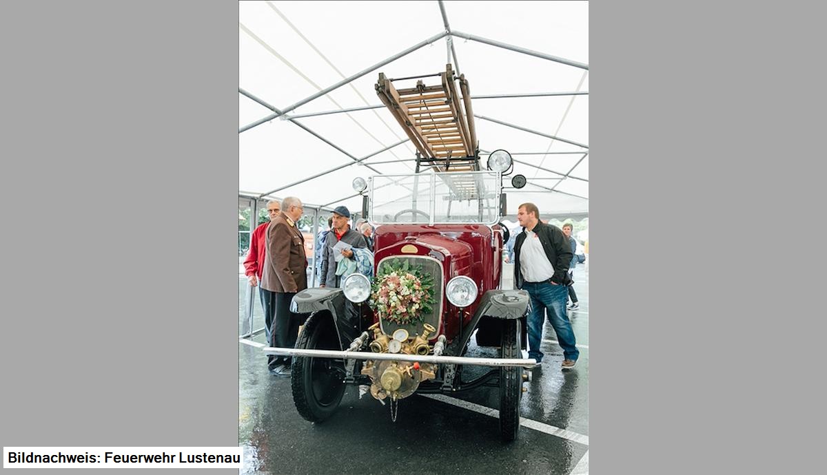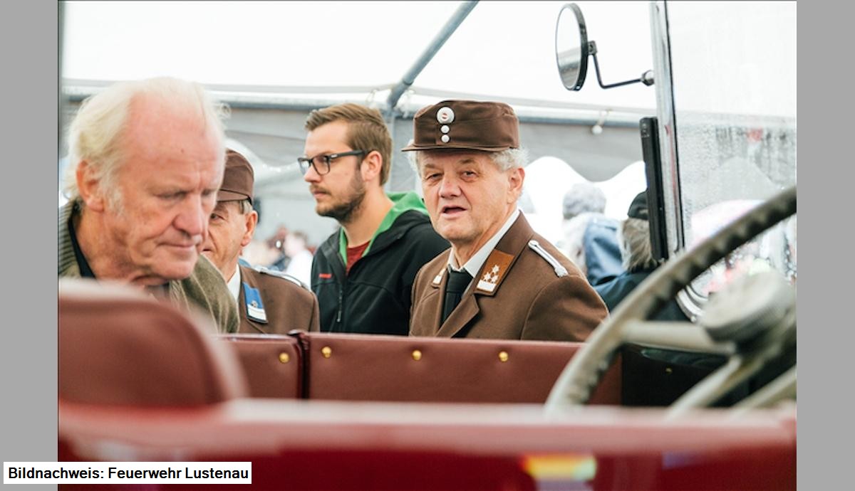 Unter großer Teilnahme von Politik, Feuerwehr und Bevölkerung konnte in einem feierlichen Festakt das nach fast 3.000 Stunden Restaurierungsarbeit fertig gestellte Fahrzeug übernommen werden. Ganz in den Vordergrund des Aktes wurde die Leistung des Restaurierungsteams, Edl Hämmerle, Walter Bösch und Hartwig Sturm gestellt.