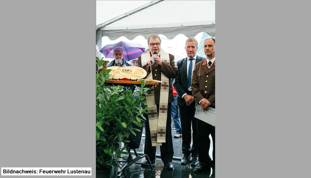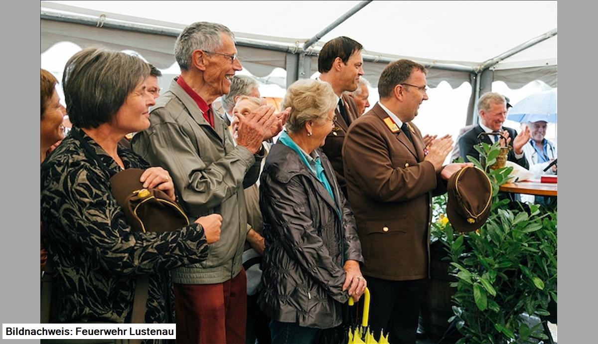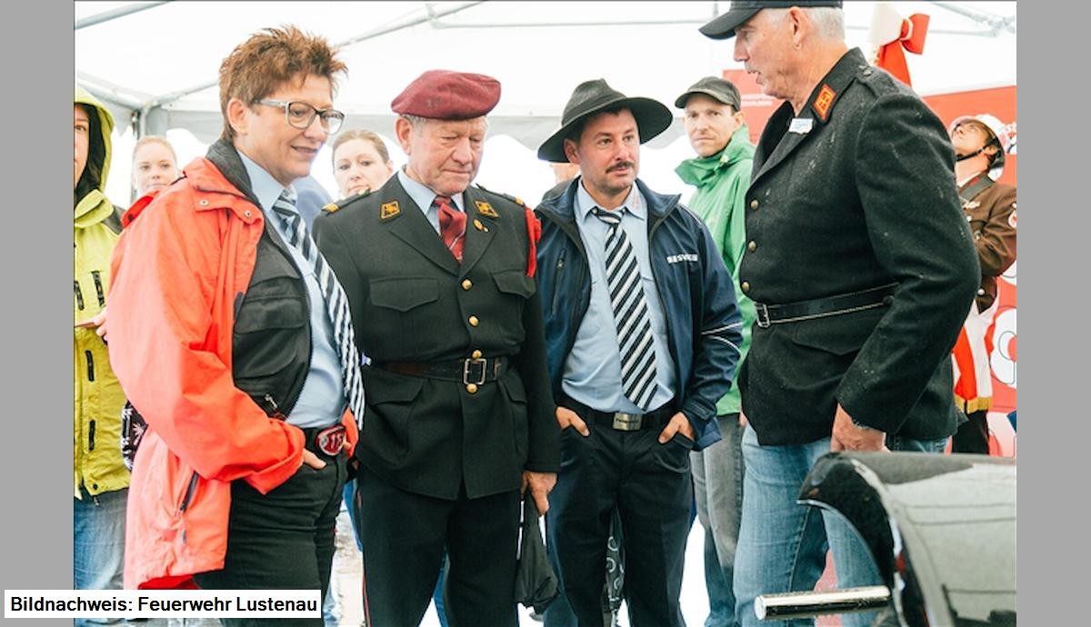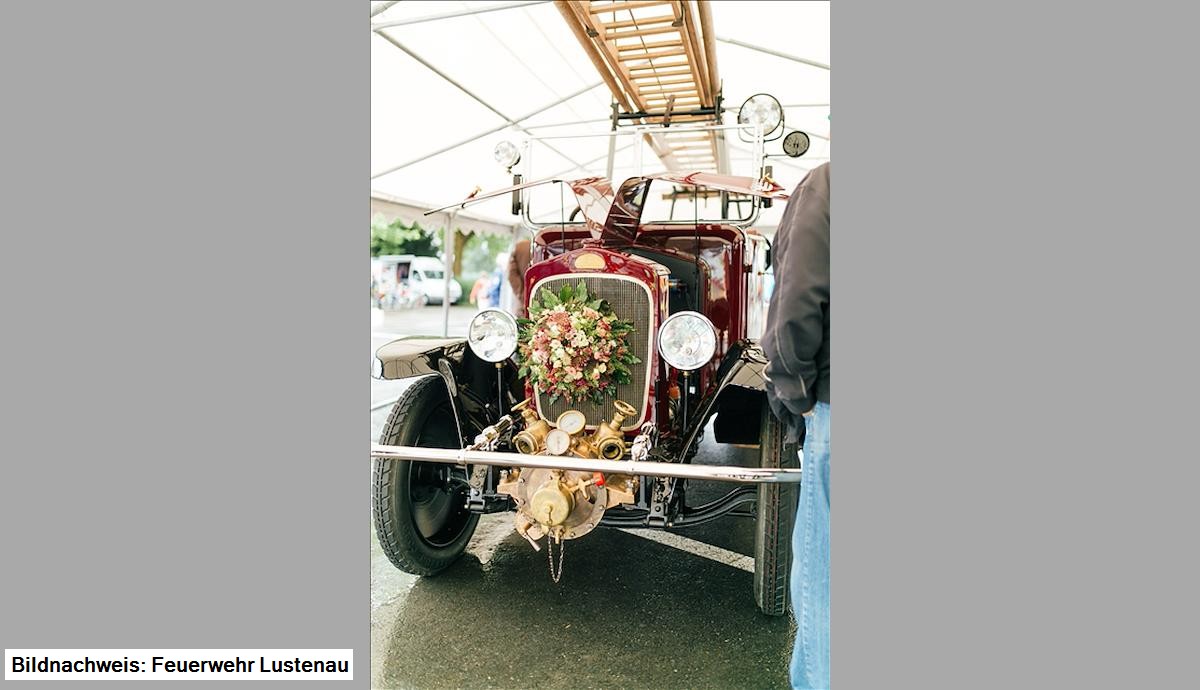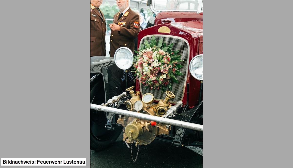 Grußworte kamen von Kommandant Dietmar Hollenstein, Bürgermeister Kurt Fischer und Landesrat Erich Schwärzler. Die kirchliche Segnung wurde von Feuerwehrkurat Pater Dominikus vorgenommen, Otto Hofer, Mundartdichter, erzählte von der Abholung des Fahrzeuges im Mai 1926 in Linz und manche selbst erlebte Kuriosität mit der Autospritze.