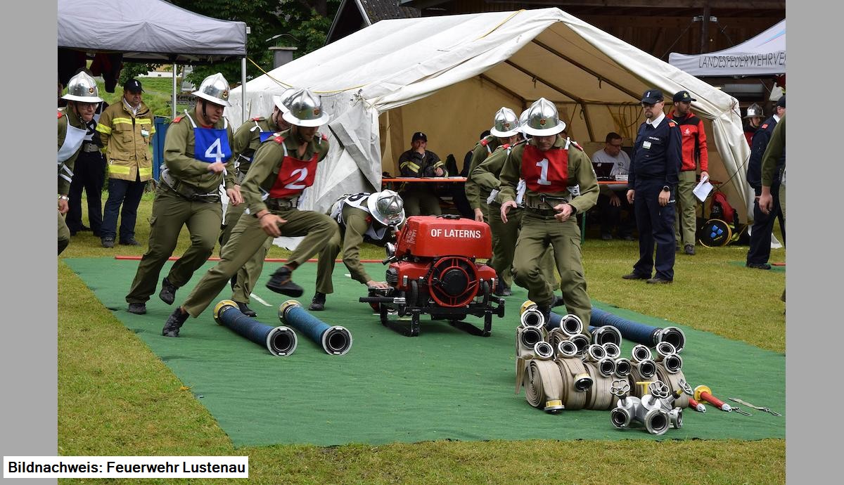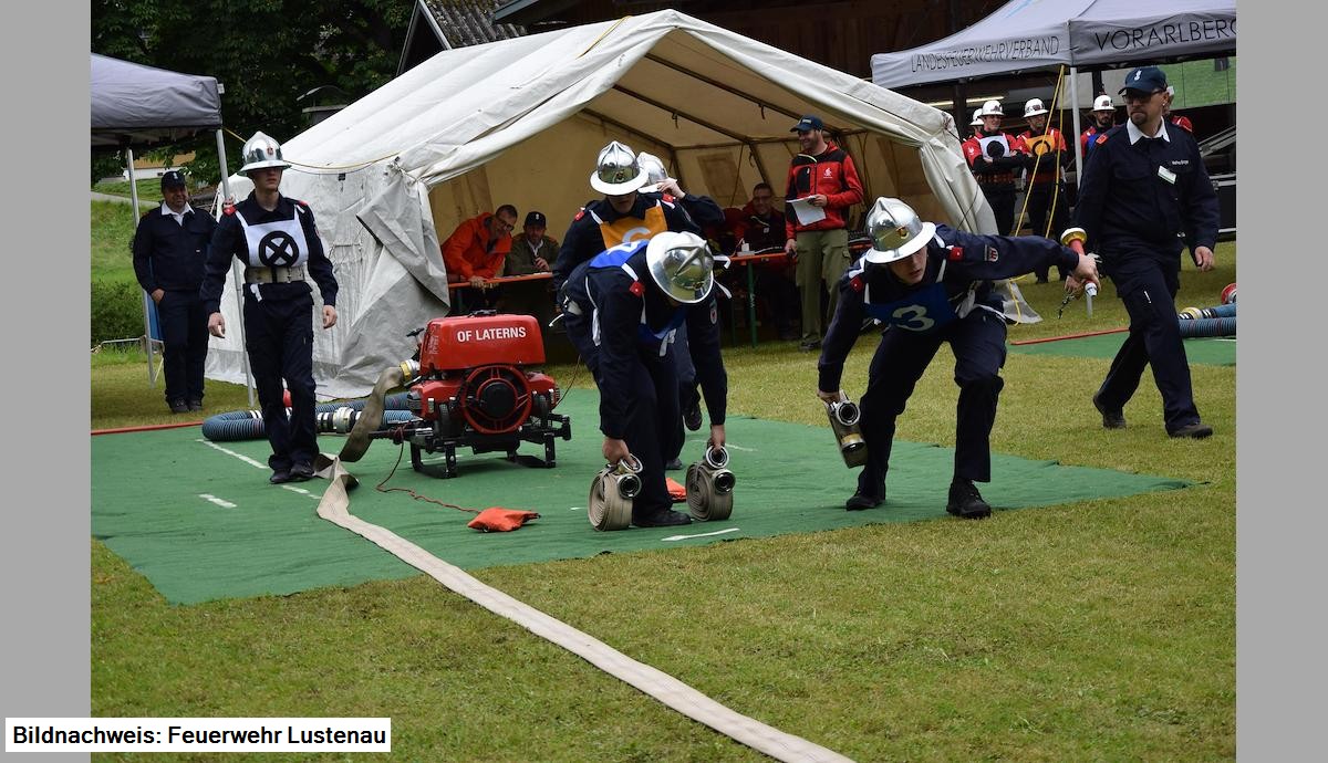 Bei mittelmäßigem Wetter, das erst gegen Mittag trocken wurde, traten die Gruppen "Lustenau 2" und "Lustenau 3" gemeinsam mit 46 anderen Wettkampfgruppen aus ganz Vorarlberg zum Bewerb an. Im jeweils besseren Lauf erreichte die WK3 mit einer Zeit von 54,95 Sekunden und 10 Fehlerpunkten (insgesamt 435,05 Punkte) den 35. Rang. Die WK2 erreichte in ihrem besseren Lauf 47,12 Sekunden, musste aber 35 Fehlerpunkte auf ihr Konto verbuchen (insgesamt 417,88 Punkte) und erreichte damit den 39. Rang.