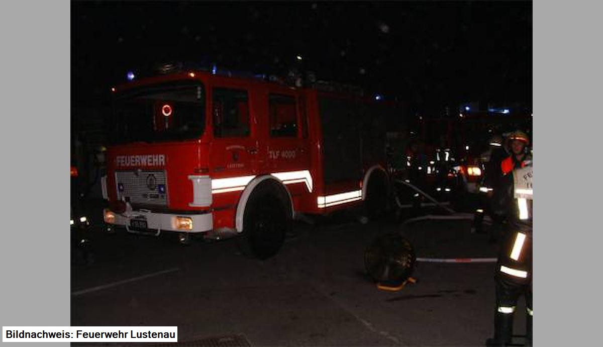 Am 10.01.2002 brach kurz vor halb 7 das Feuer in der Tischlerei aus. Bis zum Eintreffen der FFW Lustenau stand bereits der gesamte Dachstuhl in Flammen. Die FFW Lustenau war mit ca. 60 Mann und acht Fahrzeugen, die FFW Höchst mit 30 Mann und drei Fahrzeugen und die Feuerwehr Bregenz mit zehn Mann (Körperschutz) im Einsatz. Die Löscharbeiten gestalteten sich schwierig, es mußte zusätzliches Löschwasser aus dem Scheibenbach - Neunerkanal gepumpt werden. Weiters mußte ein Steiger der Fa. Micheluzzi zur Brandbekämpfung eingesetzt werden. Bei den Löscharbeiten wurde ein Feuerwehrmann (Mitglied des Atemschutztrupps der FF Lustenau) beim Einsatz im Objekt von herabstürzenden Deckenteilen getroffen und konnte erst nach ca. 20 Minuten geborgen werden. Er erlitt schwere Verbrennungen an Armen und Beinen sowie im Halsbereich und wurde nach Erstversorgung durch den Notarzt schwer verletzt ins KH Dornbirn eingeliefert. Zwischenzeitlich ist der Wehrmann wieder vollständig genesen.