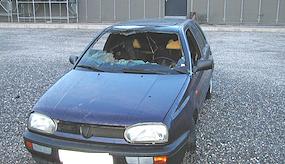 Im Fahrzeugraum völlig ausgebrannt ist heute früh ein Fahrzeug auf dem Parkplatz der Eishalle.
