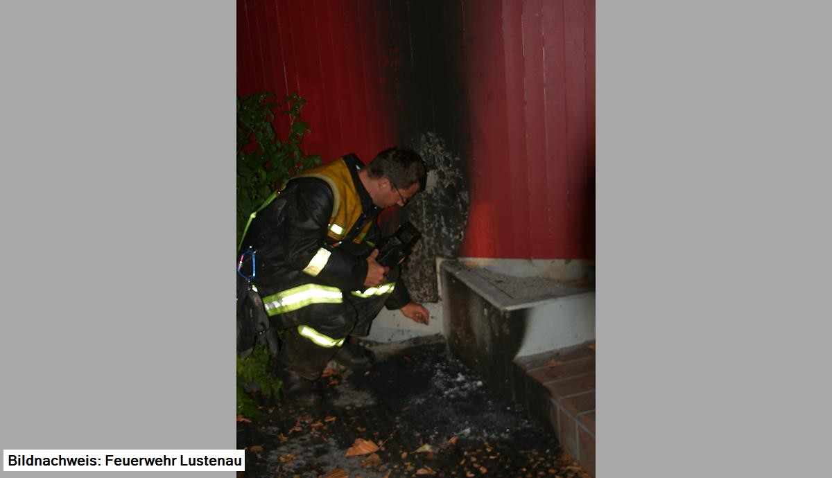 Kontrolle der Brandstelle mit Wärmebildkamera und Nachlöschen der Brandstelle.