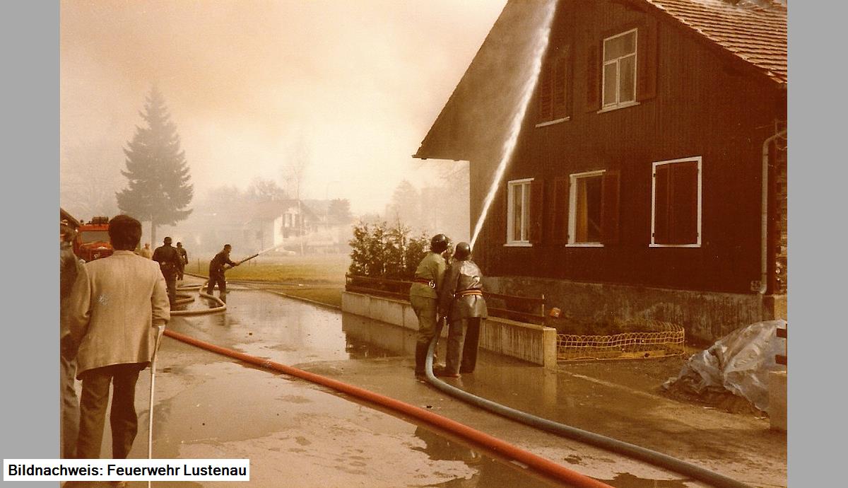 Abschrift aus der Neuen Vorarlberger Tageszeitung Lustenau (ajk) – In Lustenau geht offenbar wieder ein Feuerteufel um: In der Nacht auf Freitag brannte der alte „Adler“ an der Schillerstraße ab. Erst in der Nacht auf den Faschingssamstag war in Lustenau ein unbewohntes Objekt angezündet worden. Die Spuren weisen darauf hin, daß in beiden Fällen derselbe unbekannte Täter zugeschlagen hat. Auch am 2. Februar war ein Zünsler am Werk gewesen. Der Bankbeamte Jochen Scherer hat seinen Wecker auf 3.50 Uhr gestellt. Auch gestern schaltete sich zu dieser Zeit sein Radio ein. „Als ich erwachte, hat es fürchterlich geprasselt. Ich denke mir „Schüttet es wirklich so?“ Der Lustenauer ging zum Fenster. Es regnete nicht. Das Prasseln aber hatte er nicht geträumt: Aus dem unbewohnten „Adler“ gegenüber quoll dichter Rauch. Sofort gab der Bankbeamte Alarm. „Zwei, drei Minuten später stand das Haus bereits in hellen Flammen“, berichtet Scherer der NEUEN. 50 Mann der Lustenauer Feuerwehr unter Kommandant Oskar Bösch waren mit 6 Fahrzeugen innerhalb kürzester Zeit am Brandplatz, Bösch zur NEUEN: „obwohl wir den „Adler“ erreichten, als die Flammen noch nicht nach außen schlugen, hatten wir keine Chance mehr. Der Dachboden brannte in der ganzen Breite vom Stiegenhaus aus. Offenbar war der Brandleger sehr gründlich gewesen.“ Daß das Feuer gelegt wurde, bestätigt auch Franz Lucny von der Kriminalabteilung: Die Spuren gleichen denen vom letzten Brand in Lustenau genau. Wir müssen damit rechnen, daß der Unbekannte noch öfters zuschlagen möchte.“ Der „Adler“ war zum Abbruch bestimmt. Im Erdgeschoß hatte der Neufeld-Verlag noch Bücher und Papier im Wert von 2 Mio. S. gelagert. Die Wehrmänner konnten das Lager von den Flammen schützen, das Löschwasser richtete aber trotzdem großen Schaden an. Über den Sachschaden am Gebäude gibt es noch keine konkreten angaben. Feuerwehrkommandant Oskar Bösch wettert über die Einstellung, daß das „warme Abbrechen“ eigentlich eine Gaude sei: „Jeder Einsatz bringt für die Wehrmänner eine Gefahr, ganz abgesehen vom Zeitaufwand. Darüber hinaus sind meist Nachbarobjekte gefährdet. Und für die Anrainer ist so ein Brand alles andere als ein Anlaß zur Freude.“