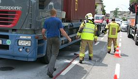Beim Hundesportplatz in der Hohenemserstraße ist ein Anhänger, der mit Rundholzstämmen beladen war, versunken. Im Einsatz waren Rüst I und Rüst II.
