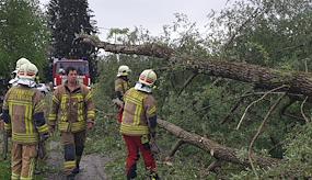 Freimachen des Weges und Absicherung durch Abfällen des restlichen Baumes. Im Einsatz: Rüst 1 und Rüst 2