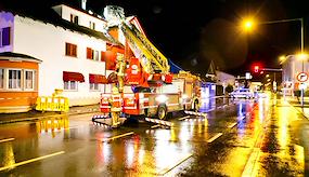 Reichsstrasse - Nachlöscharbeiten am Dachstuhl