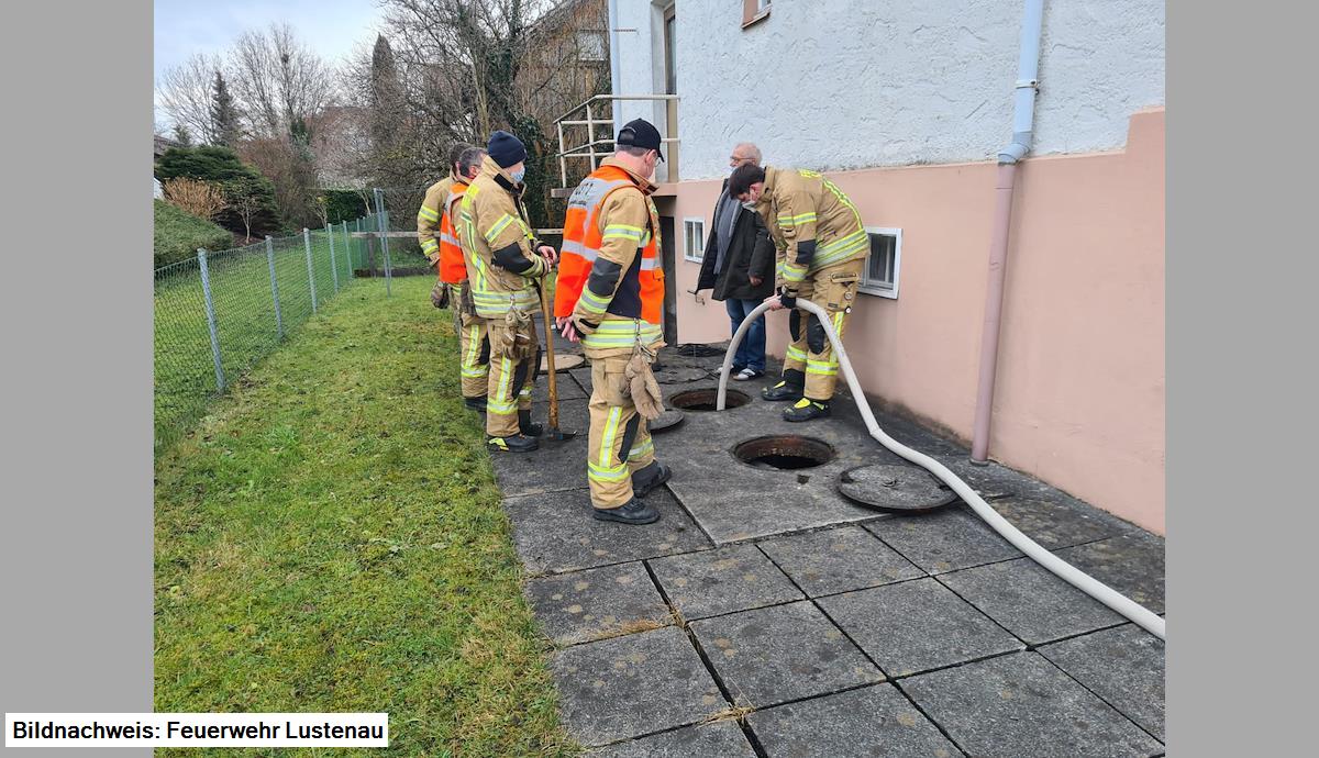 Keller wenige Zentimeter unter Wasser, mittels Wassersauger gereinigt Im Einsatz: Rüst 2