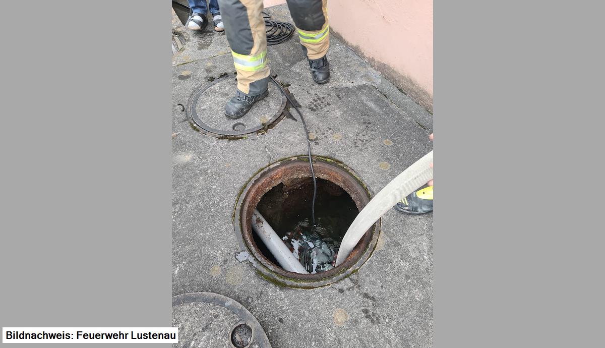Tätigkeit am Einsatzort: Abpumpen der umliegenden Schächte und ehemaligen Senkgrube, Ursachenforschung, Aufbau einer Sandsackbarriere, Verständigung Bereitschaft Wasserwerk