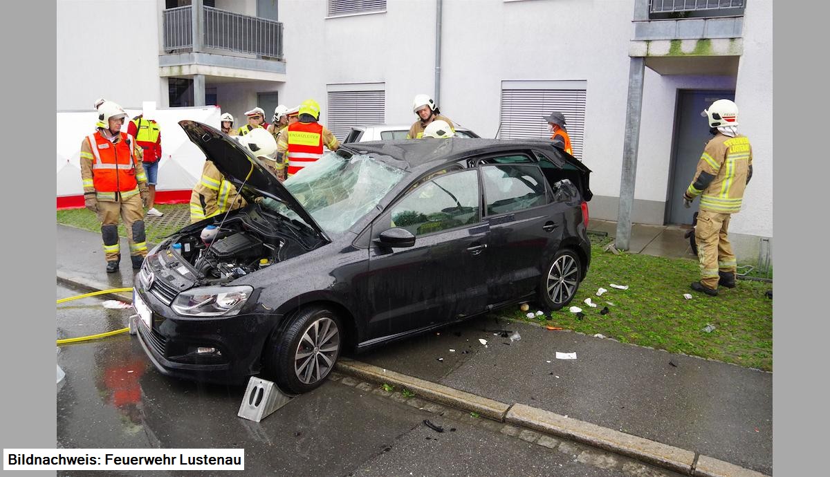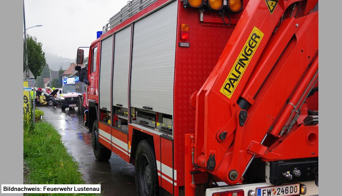 Am 16.8.2021 um 15.30 Uhr fuhr ein 30-jähriger Mann aus Bregenz bei starkem Regen mit seinem 4-achsigen Lkw auf der Hofsteigstraße in Lustenau in Richtung Sender. Gleichzeitig wollte ein 19-jähriger Mann aus Fußach mit seinem Pkw an der Kreuzung Steinackerstraße - Hofsteigstraße in Fahrtrichtung Ortsmitte vor dem Einfahren in die Hofsteigstraße anhalten, da er sich im Nachrang befand. Er führte auf dem Beifahrersitz eine 16-jährige Verwandte mit.