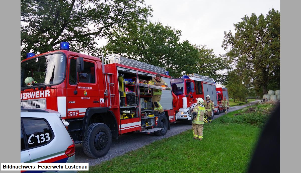 Situation bei Ankunft: Freistehende Riedhütte in Vollbrand Tätigkeit am Einsatzort: Löschen der Riedhütte unter Atemschutz, Entfernung von drei Gasflaschen, Erstellung Wasserversorgung, Ausleuchtung der Einsatzstelle Im Einsatz: ELF, Tank 1, Tank 2, Tank 3, LF 1, Leiter, Rüst 1, Rüst 2, VF, Rotes Kreuz, Polizei AS