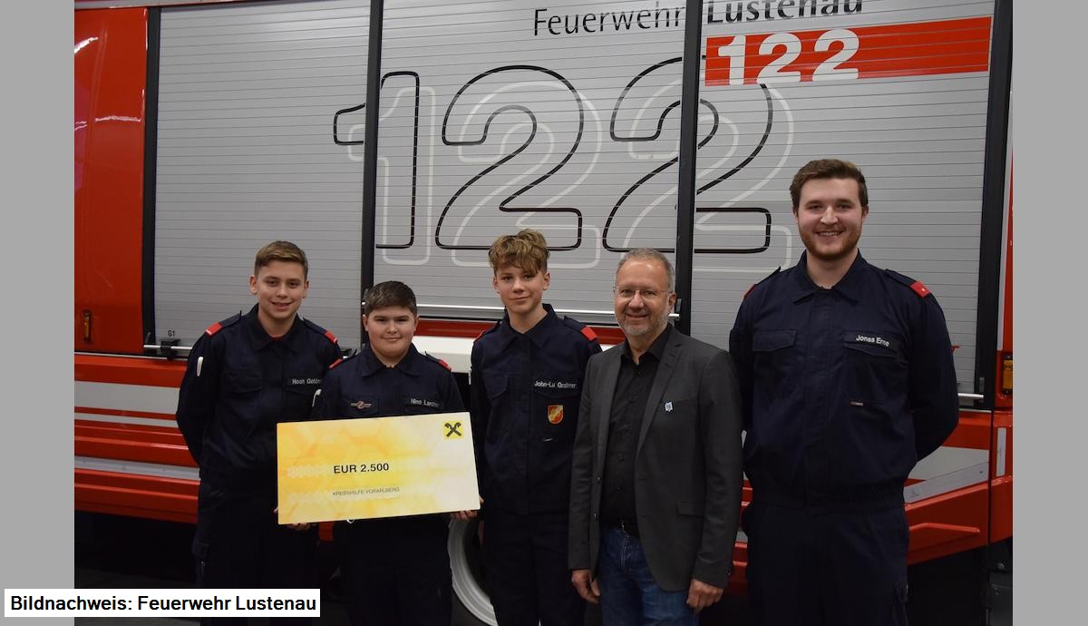 Dr. Bernd Hartmann bedankte sich bei der Lustenauer Feuerwehrjugend für ihr großes Engagement und die großzügige Spende für die Vorarlberger Krebshilfe.